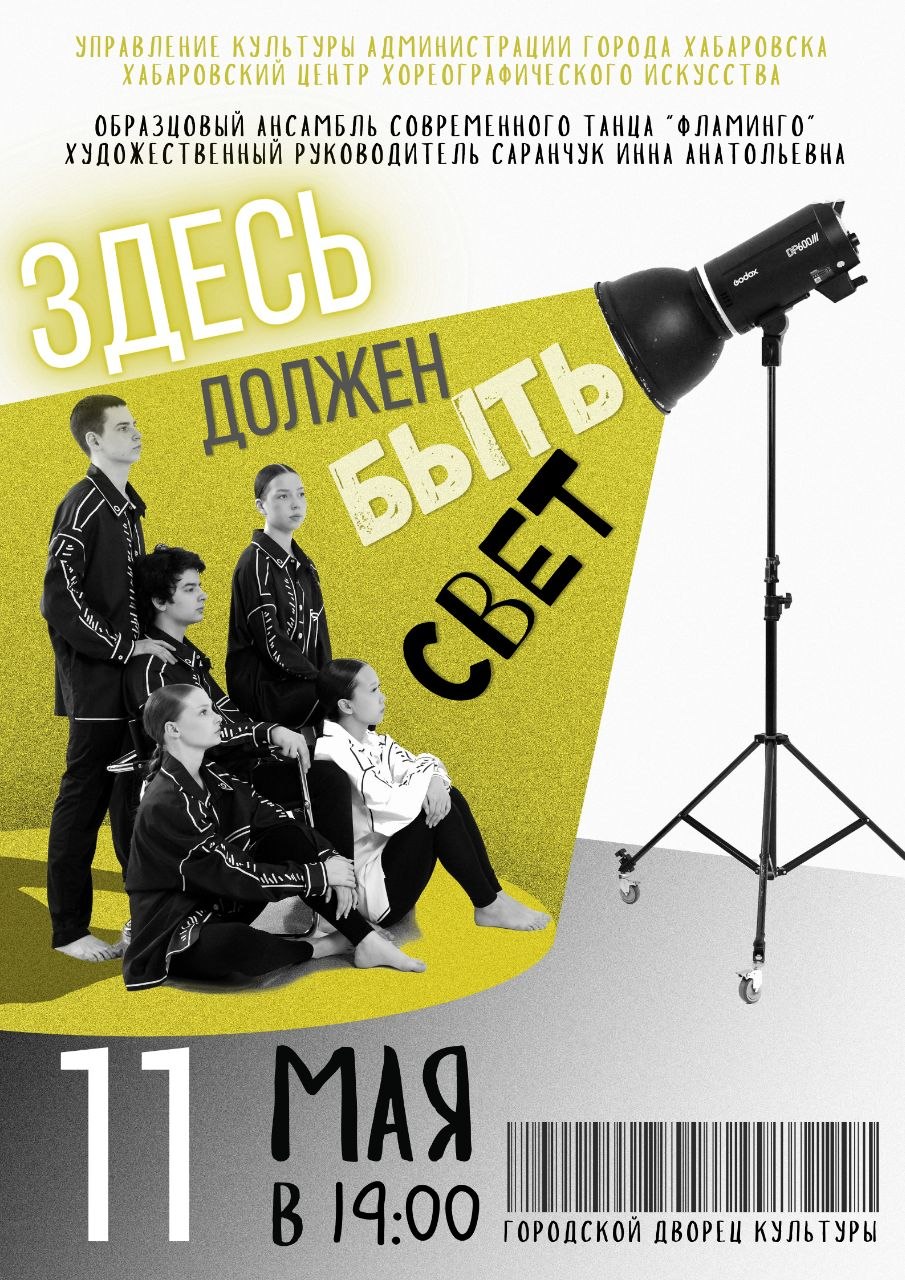 11 мая — «Здесь должен быть свет»Отчётный концерт Образцового ансамбля современного танца «Фламинго». Вас ждёт насыщенная программа с множеством номеров — от детского танца до контемпорари. МАУК «Городской дворец культуры», г. Хабаровск, ул. Ленина, д. 85. Вход по пригласительным билетам. |
